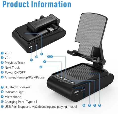 2 in 1 Function: Bluetooth Speaker and the design of the mobile phone holder make it more convenient for you to use.Bluetooth 5.0 speaker cell phone holder Best gift for all people: If you are not satisfied, we provide a free refund.