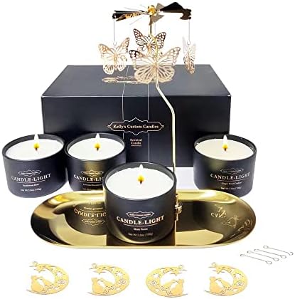 【Fun Rotating Candle】The carefully designed Kelly’s custom candle rotating candle set generates heat from the candle flame when lit, and relies on the principle of air convection to drive the top impeller to rotate. When dancing, the impeller will reflect twinkling stars, creating a beautiful night scene. This is the best birthday gift for women’s friendship.