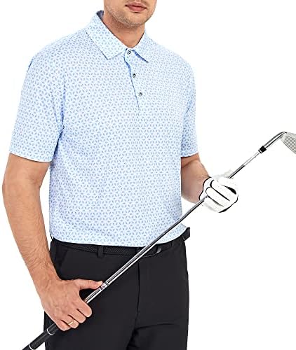 Esabel.C Golf Shirts for Men Dry Fit Performance Short Sleeve Print Moisture Wicking Collared Shirt