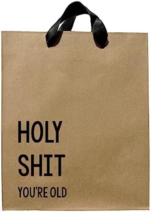 FarmedandFashioned’s sturdy and funny brown kraft gift bags with black ribbon handles add a humorous touch to any gift. Measuring at 8.25″ W x 4.34″ D X 10.5″ tall these medium size bags are not too big and not too small but perfect to wrap the gift for that friend, family member, loved one or colleague that has a witty and sarcastic sense of humor.