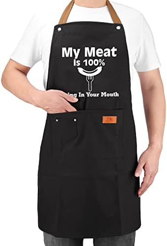 Perfect size- Cooking Aprons fit both men and women, Measuring 31 by 27 inches; Feature an adjustable neck strap and 39-inch waist strap, perfect for the family. Funny cooking aprons gifts for men, boyfriend.