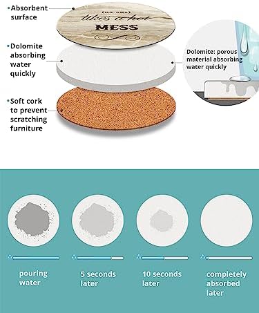 Amazing Absorbent Coasters : With the absorbent ceramic materials, LIFVER coasters will instantly soak up condensation—which, later, miraculously evaporates—and also protect your desktops, dining tabletops, kitchen countertops from hot drinks.