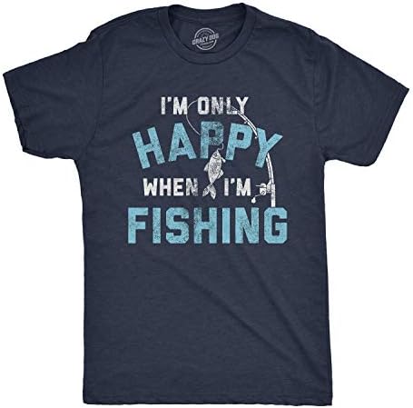 Mens I’m only Happy When I’m Fishing Tshirt Funny Fathers Day Outdoor Hobby Gift Tee