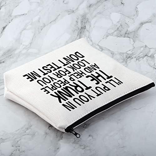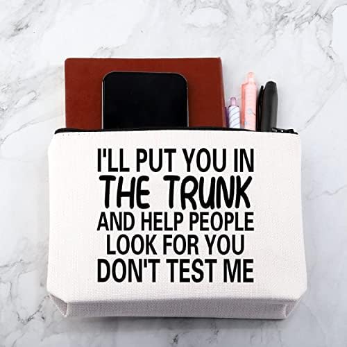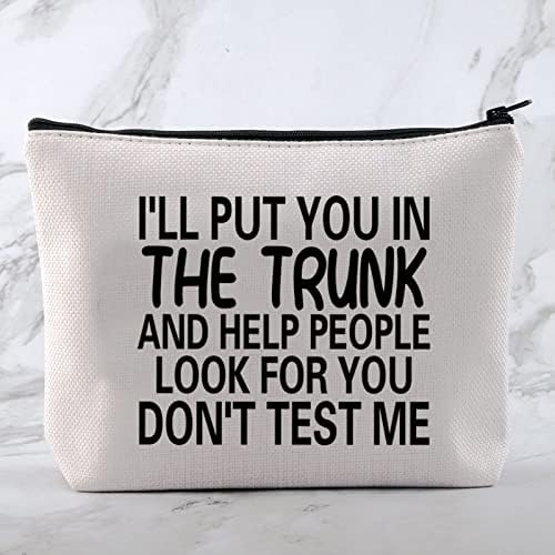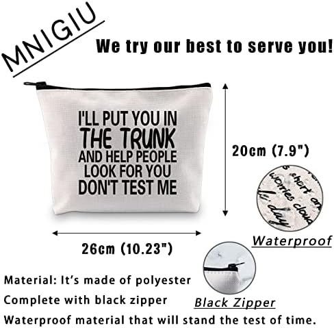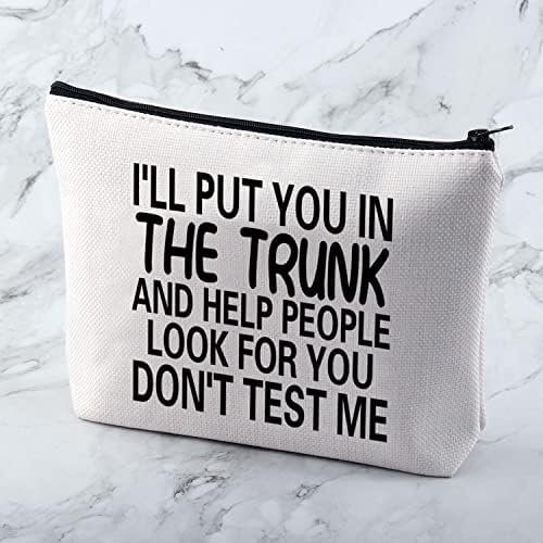 MNIGIU Funny Quote Cosmetic Bag I’ll Put You In The Trunk And Help People Look For You Don’t Test Me Cosmetic Bag Sarcastic Gift Humor Gift For Women