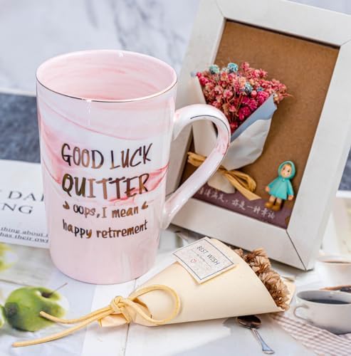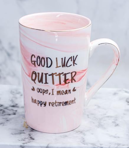 HUMOROUS GIFT FOR COLLEAGUES – She would have a big laugh and feel touched with this cute saying ” Good luck,quitter, oops,I mean happy retirement” , It’s dishwasher safe but Not microwave safe