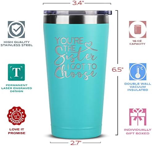 QUALITY BFF TUMBLER: Our durable, timeless keepsake tumbler is mint-colored and holds 16 oz. It’s permanently laser engraved with our custom ” You’ re the Sister I Got to Choose” artwork, making it a bff tumbler that truly celebrates your unique bond