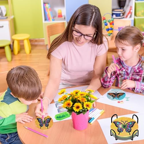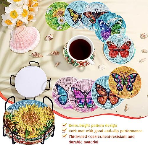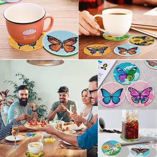 TDOOW 8Pcs Diamond Painting Coasters Kits Butterfly Pattern Craft Supplies DIY Funny Gift for Adults and Kids