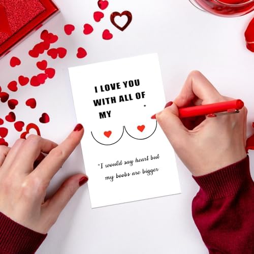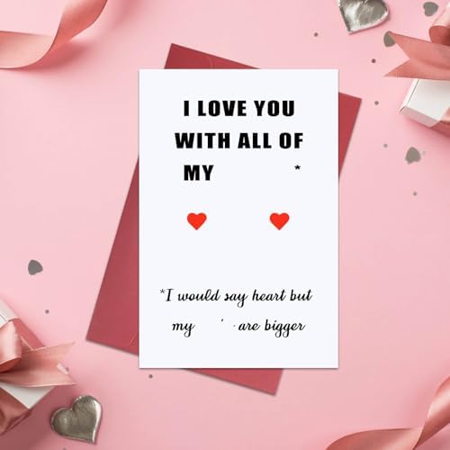 💑【Valentines Day Gifts For Boyfriend】”I Love You With All Of My B**bs.I Would Say Heart But My B**bs Are Bigger” Ithmahco has boldly infused them with a dash of saucy innuendos and playful teasing, offering you a whole new way to express yourselves. With their unique designs and tantalizing words, these cards are guaranteed to add more fun and surprises to your special day.