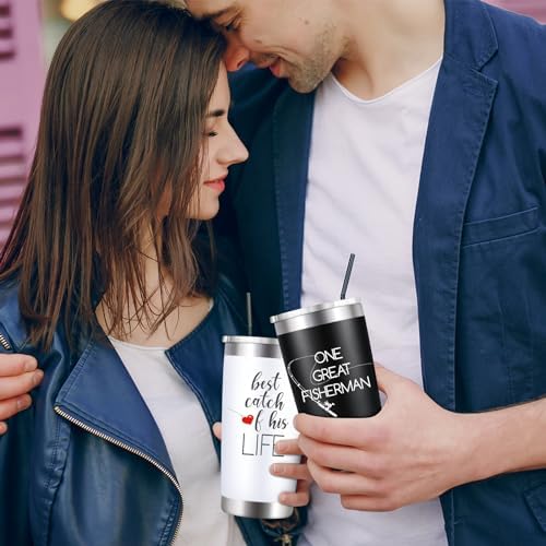 UNIQUE HIS AND HERS GIFTS-Our personalized wedding anniversary mugs with funny heart-touching design”One great fisherman best catch of his life” will definitely be great ideas for couple friends,parent,fishing lovers,fisherman,fiance and fiancees,bride and groom,wife and husband,boyfriend and girlfriend,mom and dad,grandpa and grandma,men and women,mr and mrs,BBF,sister,gigi,nana,mimi