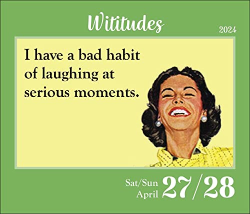 Each daily page features a hilarious, relatable wisecrack on topics ranging from friendships, job crazies, pesky grown-up responsibilities, dieting, cocktails, the “joys” of aging, and more. The calendar’s sarcastic witticisms will keep you laughing all year.